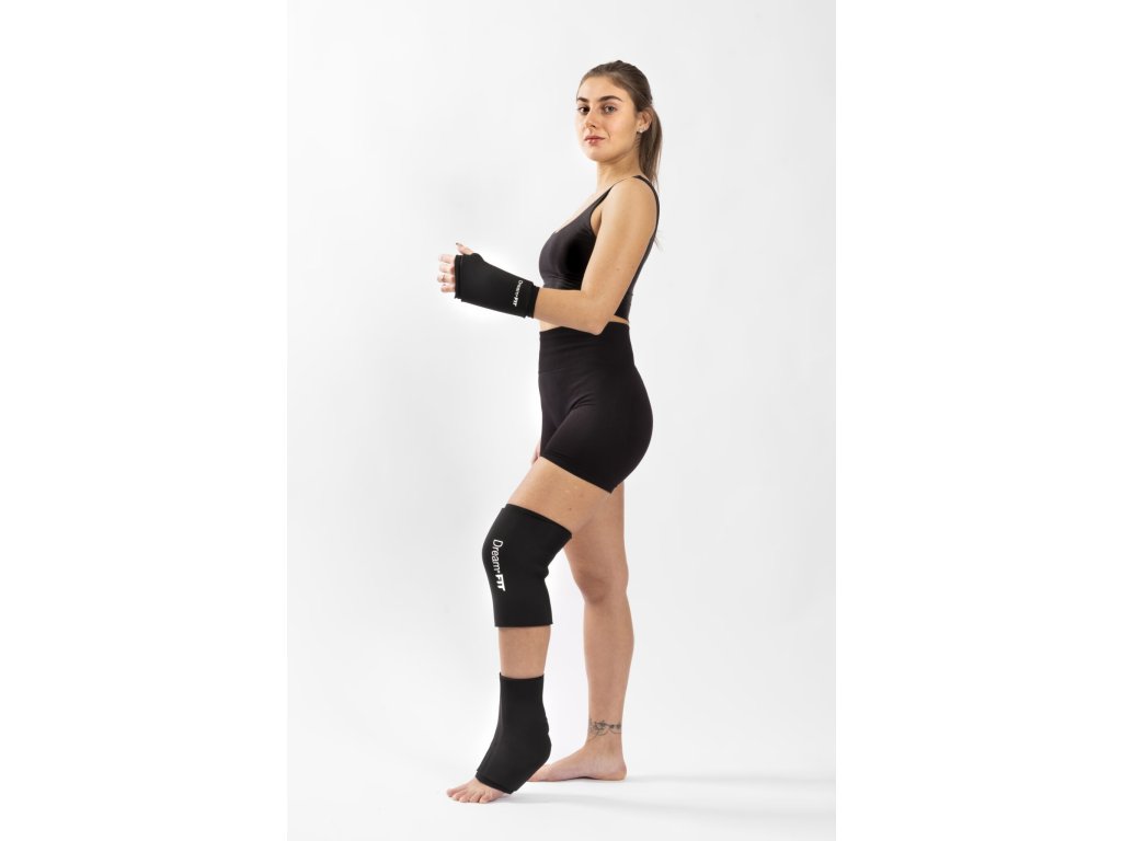 Bandáž je oboustranná, vyrobená z flexibilního materiálu pro snadné a pohodlené nasazení a použití.