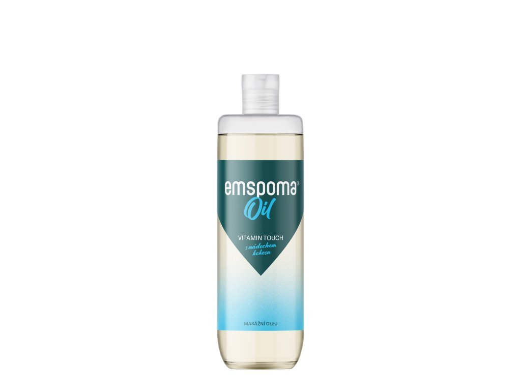 Emspoma Oil Vitamin Touch poskytuje uvolnění napětí ve svalech, zklidnění mysli a celkovou péči o tělo během relaxační, či sportovní masáže. Je obohacen o kokosový olej a vitamín E, který přispívá ke zpomalení stárnutí pokožky.