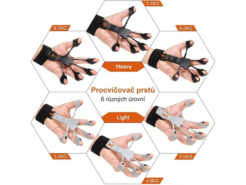 Ergonomický design: Nastavitelný pásek na zápěstí zajistí, že pomůcka perfektně sedí každé velikosti ruky a při cvičení nesklouzává.